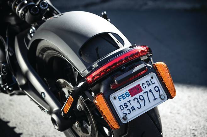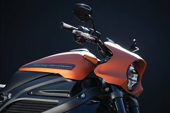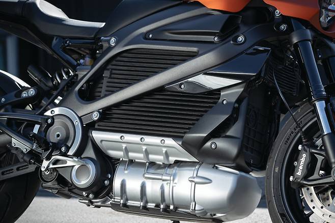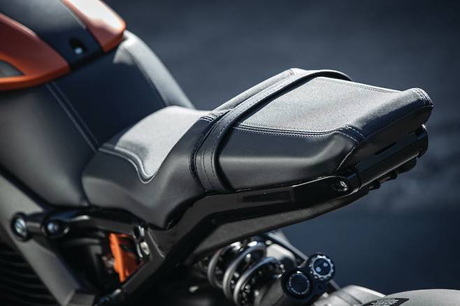 예상대로 라이브와이어에는 할리데이비슨 특유의 감성적인 접근법이 곳곳에 배어있다. 일단 차체의 만듦새부터 제대로 만들어진 모터바이크라는 느낌이 강하다. 기존의 전기 바이크들은 달라야 한다는 강박증 때문인지 경쟁적으로 못생기게 만드는 것이 아닌가 싶을 정도로 특이했다. 하지만 라이브와이어는 제법 근사한 디자인을 가졌다. 도심 카페 앞에 서있어도 전혀 이질적이지 않고 도로 위를 달리는 모습을 봐도 그렇다. 할리데이비슨 레이스 유전자를 담은 자그마한 연료탱크(비록 모양뿐이지만)와 비키니 카울에서는 레트로 무드마저 느껴진다. 기본적으로 라이브와이어는 프리미엄 모터바이크를 지향한다. 그만큼 모든 부분이 가성비와는 거리가 먼 만족감을 우선으로 한다. 파우더 코팅된 금속의 터프한 질감과 고급스러운 페인팅, 알루미늄의 묵직한 광택에 가죽 질감까지 다양한 소재를 이용해 마무리 된 차체는 묵직하 면서도 고급스럽다. 그 아래 반짝이지만 묵직한 형태의 모터가 엔진의 존재감을 대신하고 있다. 날렵하고 깔끔하게 만들어진 리어시트, 스윙암에 붙어있는 테일 램프와 번호판으로 독특한 뒷모습이 연출된다. 한 가지 아쉬운 점은 테일램프의 위치 때문에 뒤쪽에서 바라보면 언뜻 크루저처럼 보인다는 것이다.