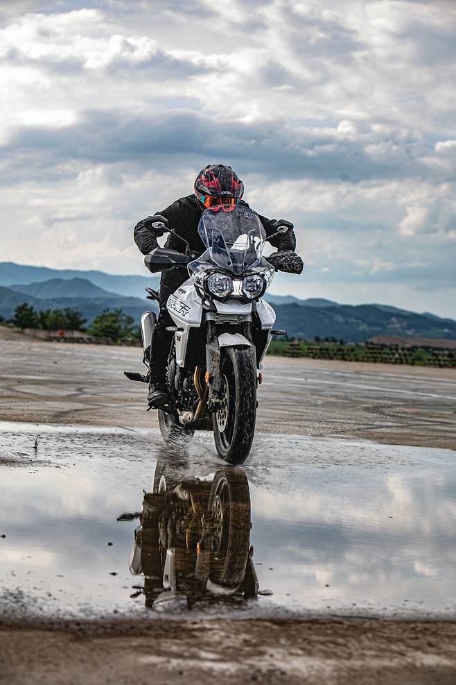 모델별로 클래스는 나누어져 있지만 엔진의 출력은 동일하다. 3기통 800cc 엔진은 스로틀을 감는 족족 경쾌하게 돌아간다. 스로틀 조작에 대한 반응 속도가 빠르고 라이더의 의도에 정확히 반응한다. 다루기 쉬운 특성에 95마력의 최고 출력은 입문 라이더에게 친절하며 베테랑은 바이크를 지속적으로 몰아붙이며 타는 즐거움을 준다. 바이크를 타기 전 3기통 엔진이 과연 어드벤처가 가진 이미지에 부합할 수 있을까 의문을 가졌다.