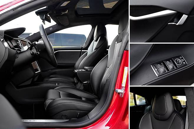 모델 S P100D가 실내 공간에 카본파이버를 더하는 아이디어를 보여줬지만 시트에서는 차별화를 이뤄내지 못한 점은 아쉽게 느껴진다. 일체형 헤드레스트를 적용한 시트는 깔끔한 편이지만 운전자의 몸을 제대로 지지 못하는 것 같다. 그래도 레그룸이나 헤드룸은 충분한 편이라 테슬라 플래그십에는 걸맞은 모습이다.