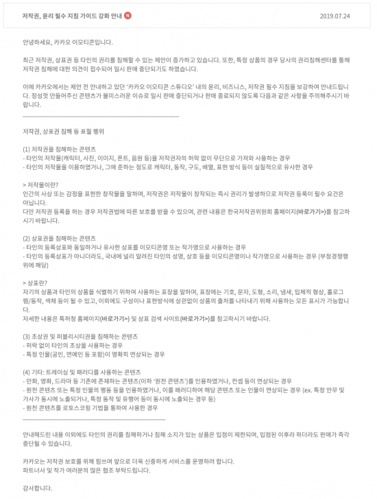 카카오톡 이모티콘의 표절 판단 기준이 강화된다.
