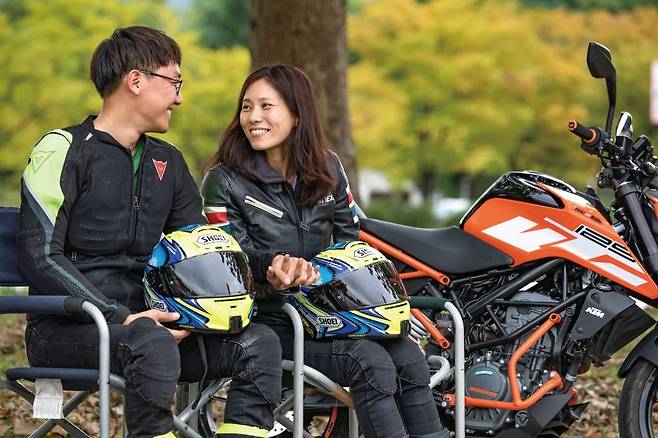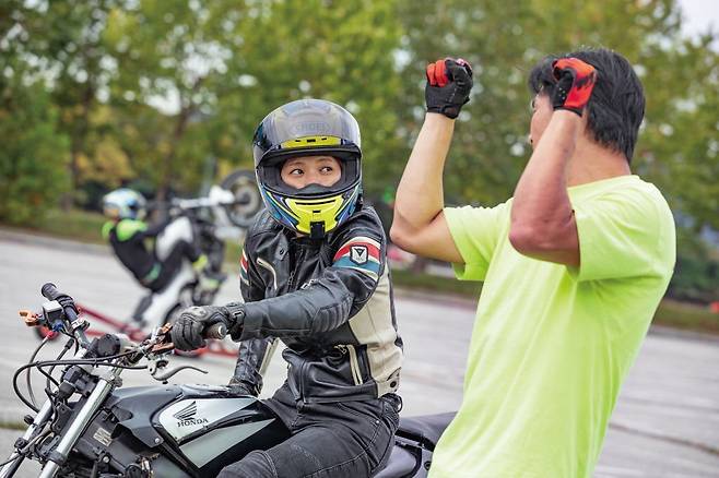 선착순으로 사전 접수를 통해 진행된 이번 교육은 ‘커플이 반드시 동반 참석’을 해야 한다는 전제조건이 붙었음에도 불구하고 순식간에 매진될 정도로 참가 열기가 뜨거웠다. 총 다섯 커플이 교육에 참여했으며 오전에는 이론수업과 기본자세에 대한 교육이 진행되었다. 안전한 교육을 위해 사전에 준비된 윌리 머신(바이크가 옆이나 뒤로 넘어가지 않도록 설계된 기구)에 바이크를 세팅하여 올바른 조작과 자세에 대한 이론교육을 실시하여 발생할 수 있는 안전사고를 최대한 방지하였다.