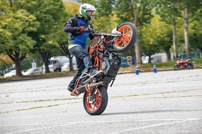 지난 9월 20일 서울대공원 주차장 부지에서 KTM 고객을 대상으로 하는 커플 윌리 스쿨이 진행되었다. 국내 바이크 스턴트 일인자이자 KTM 앰버서더인 김용학 선수가 윌리(Wheelie 프런트 휠을 들고 주행하는 기술)를 보다 안전하고 즐겁게 배우기 위해 윌리 전용 안전 장비와 함께 교육을 진행했다.