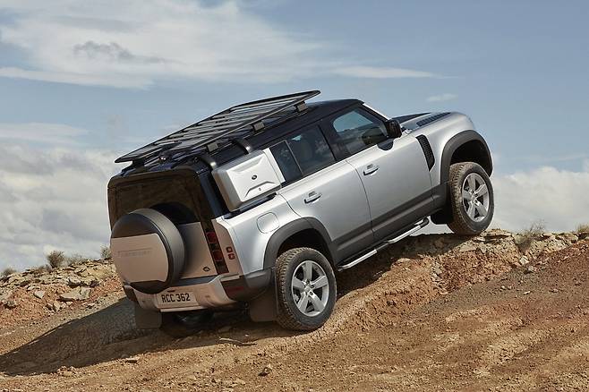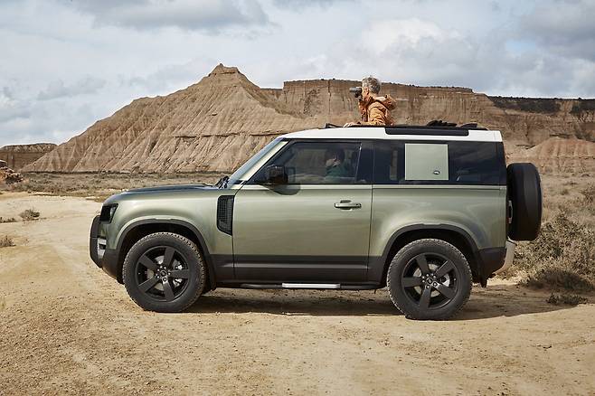 올 뉴 디펜더는 전후방 짧은 오버행과 독특한 실루엣을 통해 탁월한 접근성 및 이탈각을 구현하며 어떠한 험로도 주파할 수 있도록 디자인됐다. 루프에는 알파인 라이트 윈도우를 사용하고 측면 힌지 테일 게이트와 외부에 스페어 타이어를 장착해 전통을 계승했다.