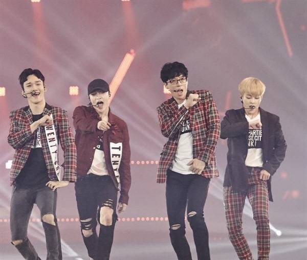| ▲ 유재석은 지난 2016년엔 엑소와 함께 '댄싱킹'을 발표하고 직접 태국 공연에 동참하기도 했다. |