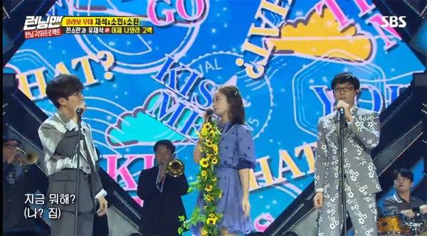 | ▲ 지난 9월 방영된 < 런닝맨 > 9주년 특집 팬미팅에서도 유재석은 소란, 전소민과 손잡고 특유의 노래 솜씨를 뽐내기도 했다. |
