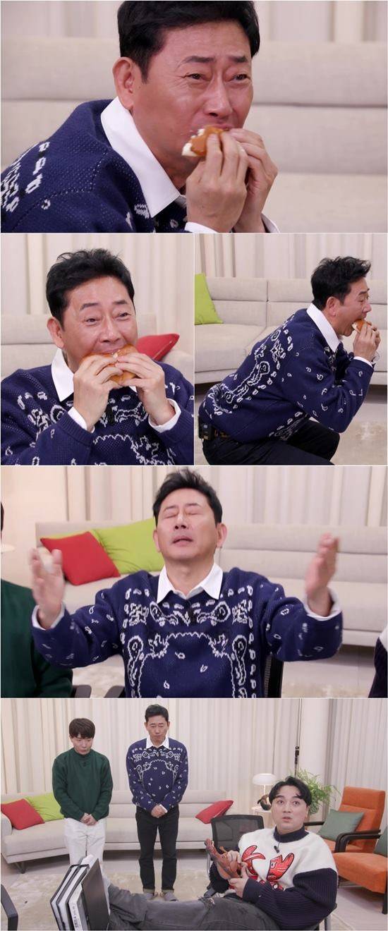 먼저 공개된 사진 속 전광렬이 거친 눈빛으로 정신없이 크림빵을 먹고 있어 폭소를 자아낸다.