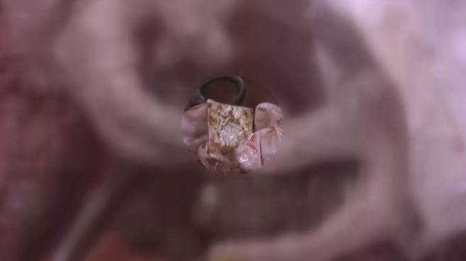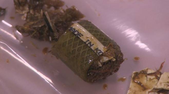 거북이 장 속에서는 수도꼭지 연결용 고무관 일부가 나왔다. 겉면에는 제조 국가가 한국임을 알리는 글자가 씌어있었다. 잘린 고무관 안에는 여러 조각의 플라스틱도 발견됐다. 거북이 몸 안에서는 이뿐 아니라 알약이 든 작은 플라스틱 포장재도 나왔다. 부검을 한 이혜림 국립생태원 연구원(수의사)은 폐비닐이나 플라스틱을 과도하게 많이 먹을 경우 장이 막히는 장폐색증이 생겨 거북이 죽을 수 있다고 말했다. 장이 뚫려 복막염을 일으킬 수 있다고도 했다.