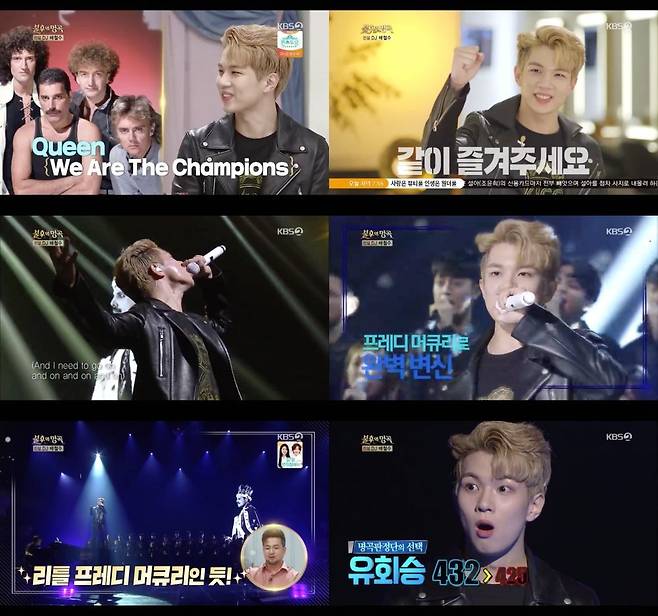 이날 마지막 순서로 무대에 오른 유회승은 영국의 전설적인 록밴드 퀸(Queen)의 ‘위 아 더 챔피언스(We Are The Champions)’를 선곡해 화려한 무대를 꾸몄다. 그는 막내답지 않은 무대 장악력과 속이 뻥 뚫리는 시원한 ‘사이다 보컬’로 퀸의 명곡을 완벽하게 소화하며 객석의 뜨거운 환호를 받았다.