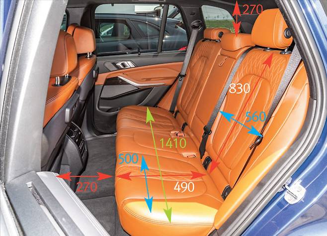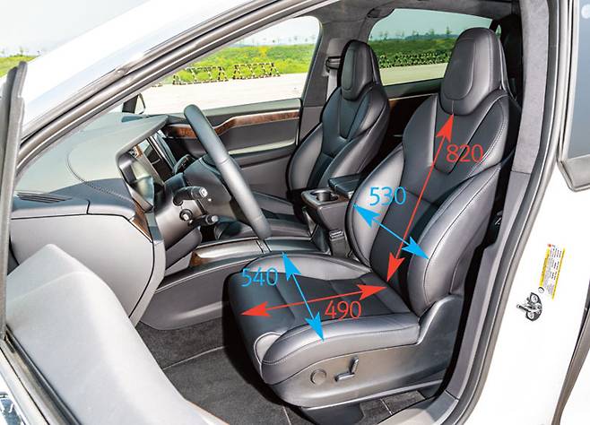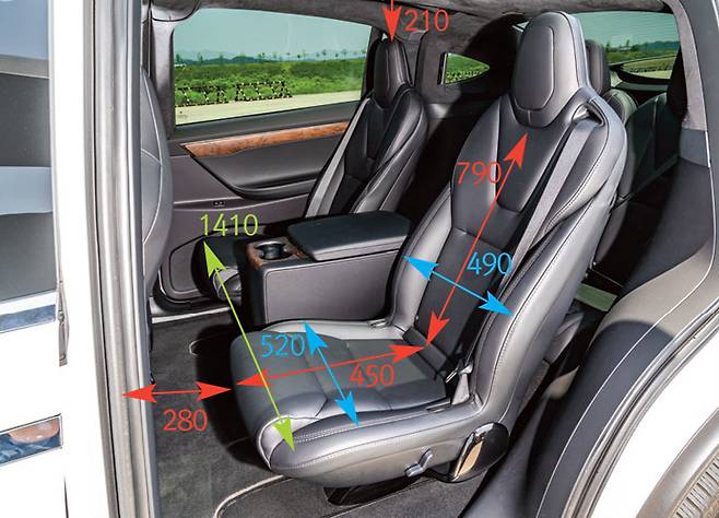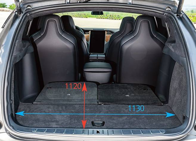 너비는 X5가 큰 사이즈를 자랑하듯 560mm로 차이를 보였고 모델 X가 490mm로 왜소하다. 수치만으론 모델 X가 억울할 법도 하다. 2열 좌석이 독립 시트로 구성돼 경쟁 모델들 보다 거주성과 안락감에서 우월한 점도 있으니 말이다.
