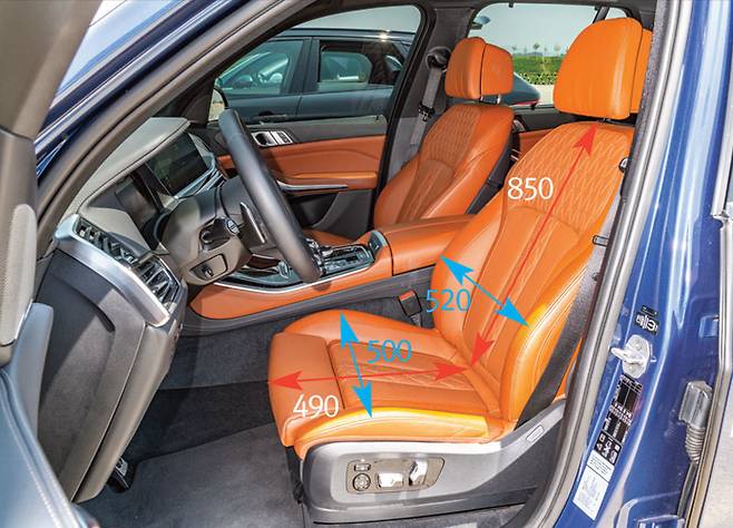 등받이 길이는 X5가 850mm로 가장 길고 모델 X가 820mm로 가장 짧다. 하지만 신체 표준 엉덩이부터 두부까지의 평균 수치는 932.18mm다. 물론 모든 사람의 신체 조건이 같지는 않겠으나 목과 머리를 빼고 어깨가 시트와 견착 되는 데는 크게 문제가 없다.