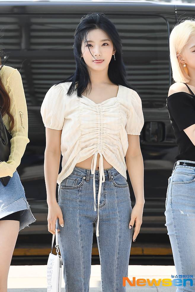 프로미스나인 (fromis_9) 멤버 이새롬이 미국 뉴욕으로 출국하고 있다.