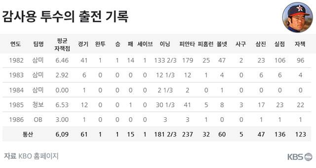 선발과 중간 계투, 마무리 투수라는 분업 체계가 없던 시절, 그는 경기를 가리지 않고 출전했다. 상대적으로 희소가치가 있던 왼손 투수라는 점도 한몫했다. 프로야구 원년 감사용은 80경기의 절반 이상인 41경기에 나와 133과 3분의 2이닝을 던졌다. 첫해 성적은 1승 14패 1세이브였다.