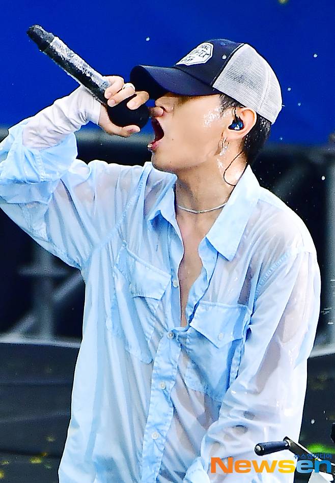 크러쉬가 7월 21일 오후 서울 송파구 잠실동 잠실종합운동장 보조경기장에서 열린 ‘2019년 워터밤’ 페스티벌에서 멋진 무대를 선보이고 있다.