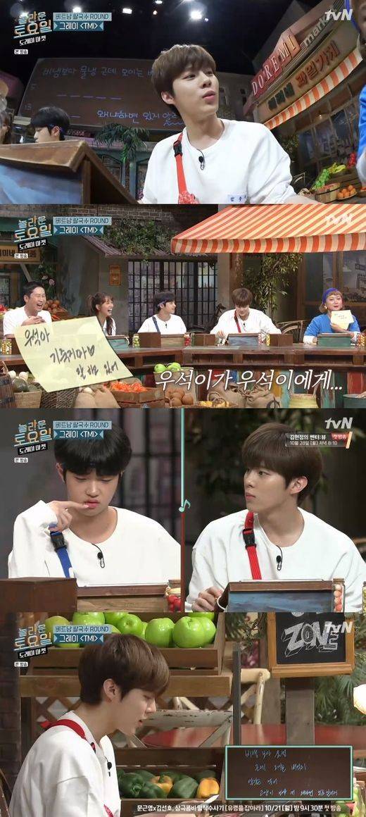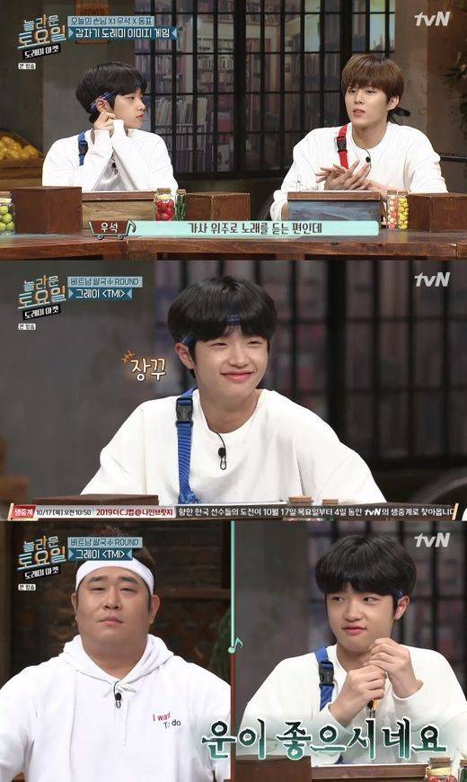 12일 방송된 tvN '놀라운 토요일-도레미 마켓(이하 '놀토')'에서 김우석과 손동표가 '놀토' 멤버들과 함께 음식을 얻어내기 위해 고군분투하는 모습이 그려졌다.