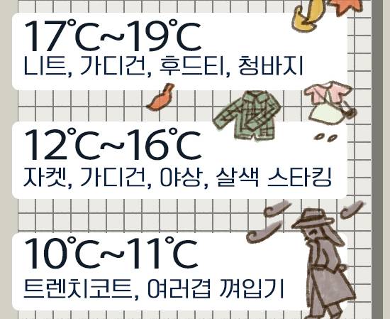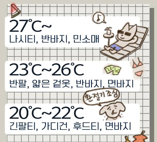 그렇다면 인포그래픽을 통해 기온별 옷차림에 대해 알아보자.