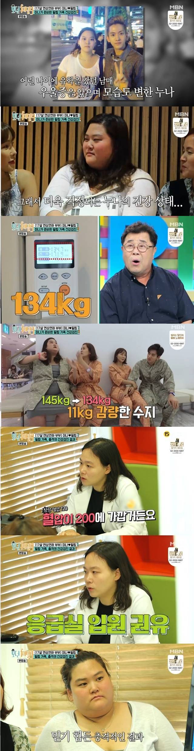 필립의 누나 수지는 키 171cm에 몸무게 134kg으로 나타나 가족들의 걱정을 샀다. 그럼에도 누나는 “145kg이었는데 11kg이나 빠졌다”며 좋아했다. 류필립은 제작진에게 “사실 그동안 말은 안했지만 누나 때문에 건강검진을 했다. 결과를 보고 많은 것을 느꼈으면 좋겠다”고 털어놨다. 류필립의 누나는 동생 필립과 함께 어린 나이에 유학을 떠나면서 우울증을 앓게 됐고 이후 모습이 점차 변해갔다.