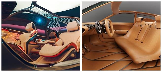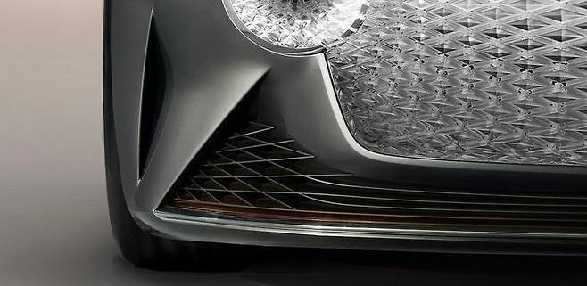 EXP 100 콘셉트는 전기차라 그릴이 필요 없다. 대신 하나의 거대한 빛의 장식물로 만들었다. 빛이 나는 모양은 당연히 망 형태다. 격자 모양의 망은 하나씩 떼어 놓고 보면 마름모꼴이다. 이를 가지고 프로토타입에선 시트의 퀼팅, 송풍구 테두리, 휠 버튼을 꾸미는데 쓰였다. 크리스털을 상징했다는 헤드라이트의 장식 문양도 망 형태의 그릴에서 시작됐다. 즉, 벤틀리는 마름모꼴을 패턴으로 해서 디자인을 완성했다.
