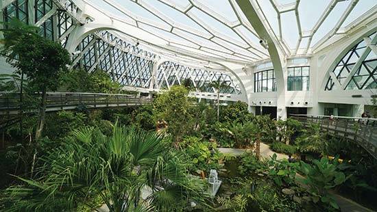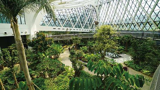 열대관에는 이런 도시를 대표하는 식물은 물론, 예쁘고 향기로운 꽃과, 거무튀튀하고 냄새도 고약한 열매가 한 나무에 피고 열리는 ‘폭탄수’도 있어서 방문객들의 흥미를 돋아낸다. 35m까지 자란다는 이 나무에는 폭탄처럼 생긴 무거운 열매가 100여 개씩 열린다. 이 폭탄수는 대만에서 왔다. 토란의 일종으로 ‘코끼리 귀’를 닮은 ‘콜로카시아 기간테아’도 주목받는 식물이다.