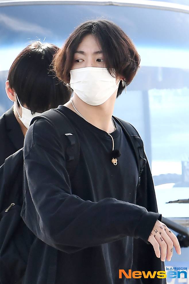 방탄소년단(BTS) 멤버 정국이 출국하고 있다.