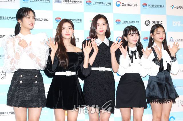 [서울경제] 그룹 버스터즈(민지, 형서, 지수, 채연, 강예서)가 13일 오후 서울 종로구 세종문화회관에서 열린 제9회 대한민국한류대상 레드카펫 행사에 참석하고 있다.