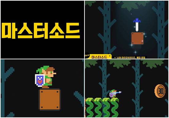 그중 특히 눈길을 끄는 것은 새로운 파워업 아이템 마스터소드. 이 아이템을 먹으면 ‘젤다의 전설’ 시리즈 주인공인 링크(젤다가 아니다)로 변신한다.