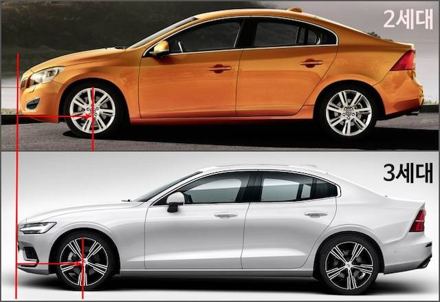 눈에 띄는 부분은 차체 비율. 뒷문이 차지한 비율이 적었던 S90보다 안정감이 높고 앞쪽 오버행은 짧아 역동적이다. 통상 앞바퀴를 굴리는 세단은 보닛 속 엔진을 안쪽으로 밀어 넣기 제한적이다. 옆에 붙어야 할 변속기와 근접한 구동축도 신경써야 하기 때문이다. 입장이 다른 디자이너와 엔지니어가 얼마나 고민했을지를 차체 비율에서 간접적으로 엿볼 수 있는 대목이다.