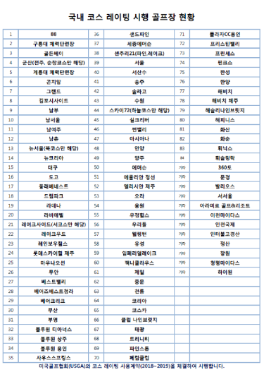 <국내 코스 레이팅 시행 골프장 현황>