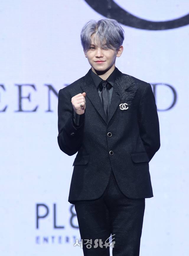 세븐틴(Seventeen) 우지가 16일 오후 서울 안암동 고려대학교 화정체육관에서 열린 세 번째 정규 앨범 'An Ode(언 오드)' 발매 기념 쇼케이스에 참석해 포즈를 취하고 있다.