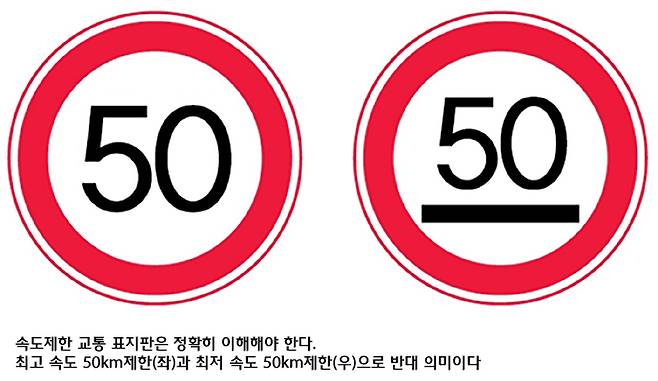 자동차가 보급되던 초기였던 영국의 빅토리아 여왕 시대에는 보행자들에게 위험한 자동차에 대한 주의를 환기시키기 위해서 자동차가 주행하는 10 미터 앞에서 한 사람이 빨간색 깃발을 들고 달려가면서 거리의 사람들에게 자동차가 오는 것을 알리도록 하는 이른바 ‘적기조례(赤旗條例; red flag act)’가 실시되기도 했다. 이 법령으로 인해 영국의 자동차산업이 프랑스보다 뒤지는 원인이 되기도 했다는 분석도 있는 것을 보면, 시가지의 차량 속도 제한이 적기조례처럼 되지 않고 정말로 보행자들의 안전을 위한 것이 되기 위해서는 세밀한 것들까지 고려해야 할 것이라는 생각이 든다. 그래서 오늘은 안전한 교통 환경과 관련된 요소들 중 하나인 교통표지판에 대해 살펴보자.
