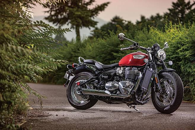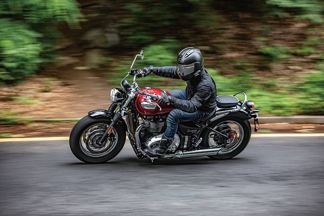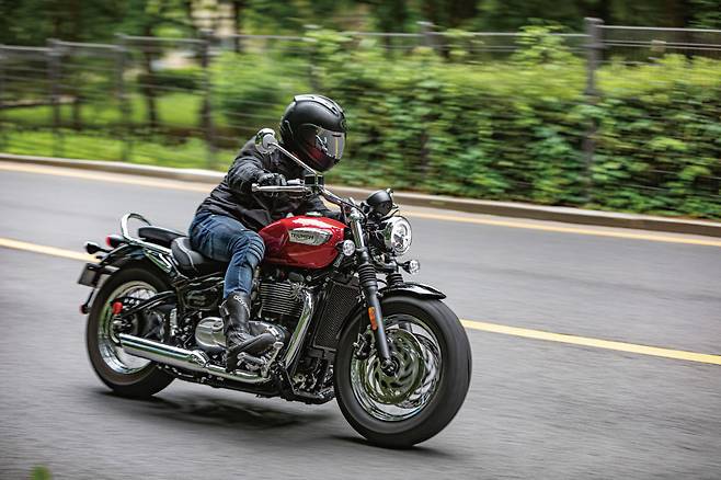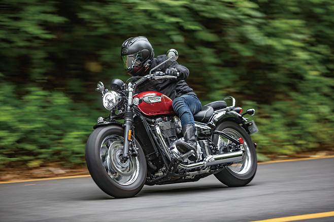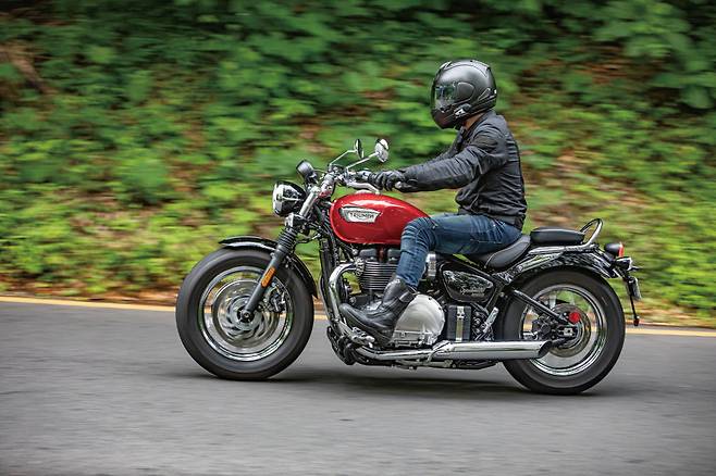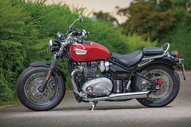 트라이엄프는 카페 레이서와 바버, 스크램블러, 크루저 등 다양한 모던 클래식 콘셉트를 각자 개성 있게 완성했다. 한 가지 엔진으로 4가지 설정을 통해 다른 맛을 냈다. 각자 스타일에 맞춰 레고처럼 파츠를 영리하게 공유하면서도 시그니처 파츠도 필수로 적용해 개성을 살렸다. 바로 그 점이 다양한 고객의 취향에 대응하는 트라이엄프의 비결이며 생존 방식이다. 스피드마스터는 정통 크루저 스타일에 트라이엄프의 시각으로 독특한 바이크로 탄생했다. 익숙한 듯 낯선, 그 느낌이 이 브리티시 크루저의 매력이다.