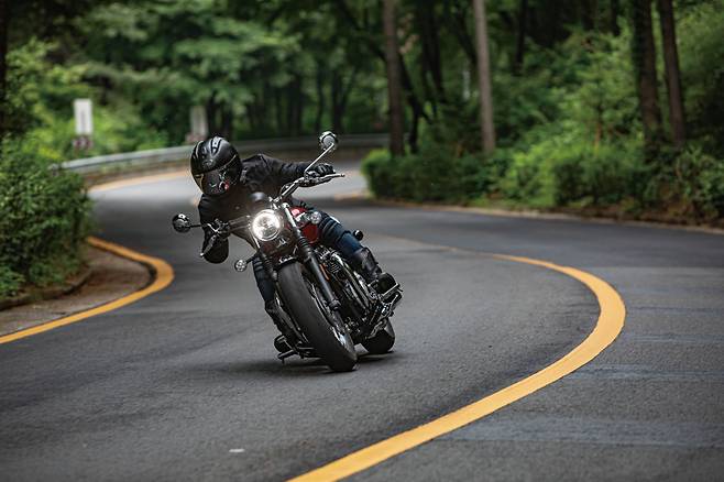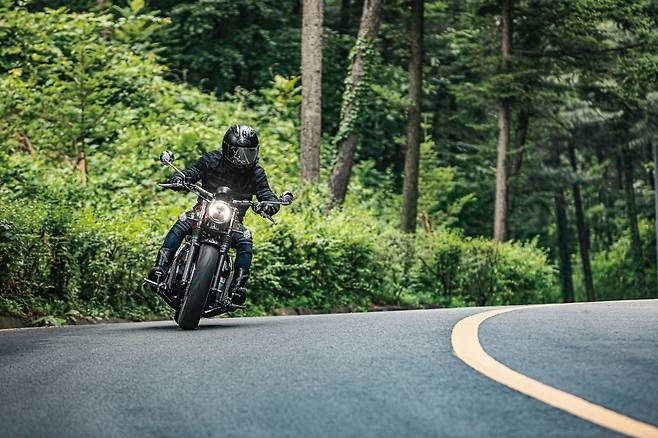 코너링 느낌도 새롭다. 걱정과 달리 라이더가 생각하는 대로 쉽게 따라온다. 150mm라는 크루저 장르로서는 좁은 폭의 리어 타이어가 적용되었기 때문이다. 다만 뱅킹 한계는 낮은 편으로 코너에 공격적으로 진입하면 스텝의 뱅킹 센서가 바닥에 긁힌다. 보다 느긋한 마음으로 라인을 크게 그리면 연속된 곡선구간도 무리 없이 지나갈 수 있다.