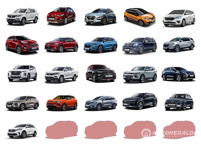 7월 셀토스가 가세하면 기아차 SUV 모델은 총 8종으로 나머지 쌍용차와 르노삼성차, 한국지엠을 모두 합친 것보다 많게 된다. 쌍용차는 티볼리와 코란도, G4 렉스턴, 렉스턴 스포츠 4종, 르노삼성차는 QM3와 QM6 2종, 한국지엠은 트랙스 1종의 SUV 모델을 각각 판매하고 있다.