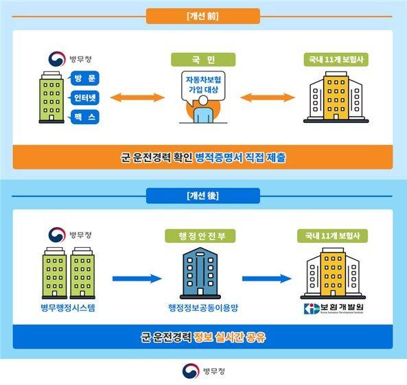 이를 통해 운전병 출신들은 자동차 보험 가입 시 개인 정보 제공 동의만 하면 군 운전경력을 확인받을 수 있게 됩니다.