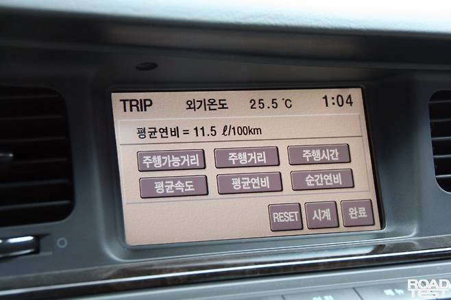1세대 에쿠스와 함께한 780㎞ 서울-광주 왕복. 장거리 주행 실력부터 먼저 말하면 ‘매우 만족’이다. 2t 덩치의 묵직한 승차감과 풍부한 6기통 엔진, 폭신한 시트 등 매우 오랜 시간을 함께 달렸어도 피곤하지 않을 만큼 편했다. 그러나 효율은 ‘기대 이하’다. 많이 바라지도 않았다. 10㎞/L만 넘기를 바랐건만, 9㎞/L 수준에 그쳤다. 역시 오래된 대형 세단은 결코 만만하지 않았다.
