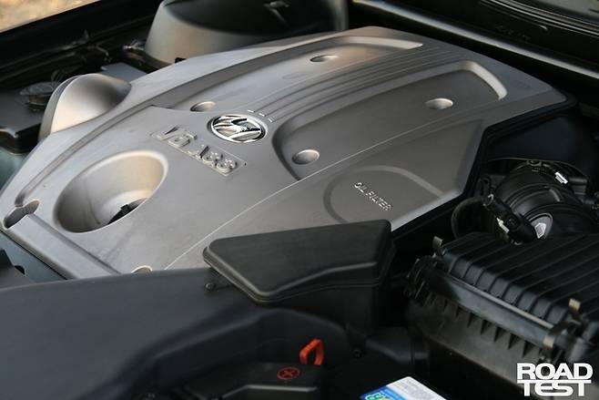 고속 정숙성도 기대 이상이다. V6 엔진은 항속 중 바람소리 뒤로 자취를 감추고, 가속할 땐 6기통 엔진의 풍부한 회전 질감이 드러난다. 특히 철저히 틀어막은 바닥 소음이 인상적이다. 부드러운 서스펜션과 17인치 작은 휠에 씌운 두툼한 타이어도 그렇지만, 출시 당시 현대차가 밝힌 대로 흡음재를 아낌없이 두른 까닭이다. 사륜구동도 아닌 이차가 이토록 무거운 이유 중 하나이기도 하다.