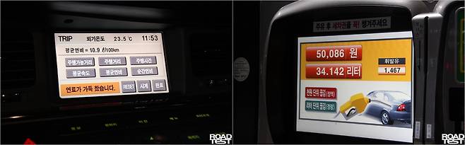 도착 후 기름을 가득 넣어 소모한 기름으로 연비를 가늠하는 ‘풀투풀’ 계측 결과는 어떨까? 광주에서 연료를 집어넣자 40.913L가 들어간다. 이를 바탕으로 계산한 연비는 L당 9.82㎞/L. 흥미롭게도 풀투풀 계측 결과가 트립컴퓨터보다 더 높다.