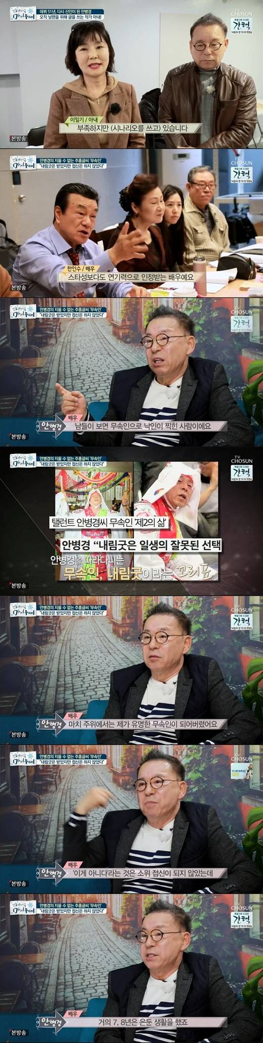 이랬던 안병경이 왜 브라운관에서 모습을 감췄을까. 그는 "나는 아직도 배우가 하고 싶어서 목이 마른데 남들이 보면 무속인이다. 주홍글씨가 새겨졌다. 저와 가까웠던 프로듀서가 제 이름으로 역할을 올리면 '걔 무속인이잖아' 하면서 잘리는 경우가 많았다"라며 "한창 연기를 지속해야 할 상황에서 연기의 길이 끊겼다"라고 토로했다.