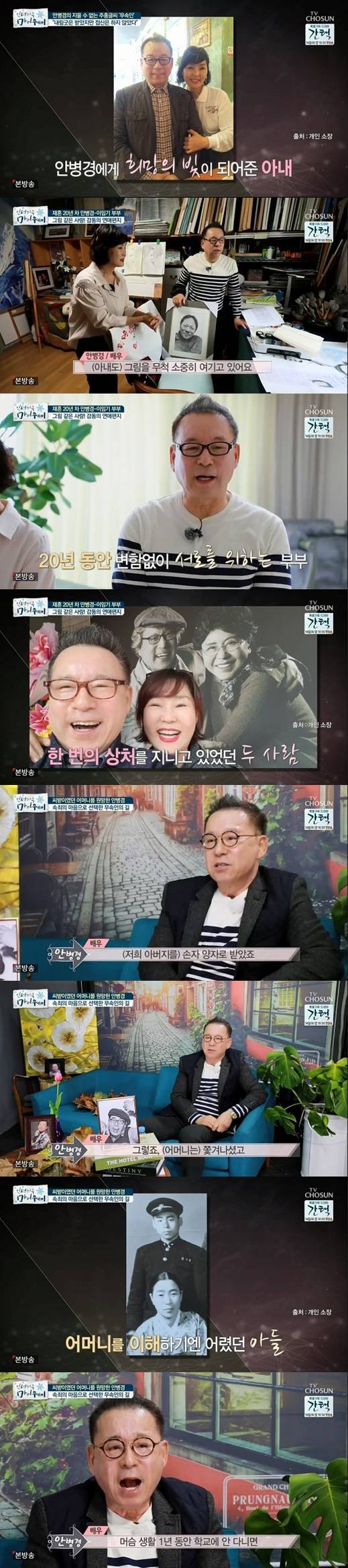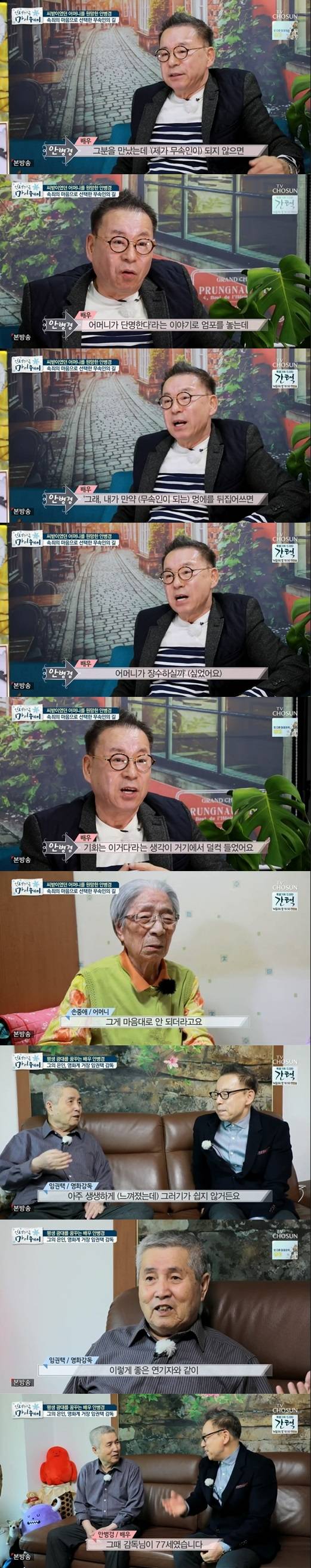 쑥스러워하던 안병경은 "감독님과 행복했는데 보답도 못하고 살았다"며 "무속인 일로 고생할 때 감독님이 '취화선'으로 다시 숨을 쉴 수 있게 해주셨다. 눈 감을 때까지 감독님은 못 잊는다"라고 말하며 존경심을 드러냈다.