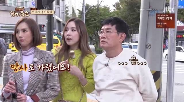 또 이희진은 "지금은 분위기가 많이 달라진 거 같다. 노래도 따라부르시더라"고 말했다. 간미연은 "우리 때는 조금 민망해하셔서 망사로 의상을 가렸다. 점잖게 바꿨었다"고 털어놨다.(사진=JTBC '한끼줍쇼' 캡처)