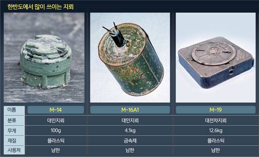 한반도에서 지뢰가 가장 많이 매설된 곳은 비무장지대(DMZ)다. 6·25전쟁 기간 동안 유엔군과 중공군, 북한군은 임진강에서 동해안에 이르는 전선 곳곳에 경쟁적으로 지뢰를 설치했다. 1953년 정전협정이 체결된 이후에도 남북은 DMZ에 수많은 지뢰를 매설했다. 유사시 적군의 공격을 저지하려는 용도였지만, 상대방 진영으로 넘어가려는 아군을 막으려는 목적도 있었다.