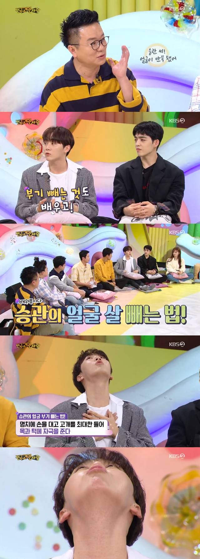 이에 부승관은 "과거 출연한 내 모습을 보고 많이 부어있길래 깜짝 놀랐다. 이젠 부기 빼는 법도 알게 됐다"고 대답했다.