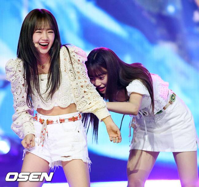 [OSEN=고양, 민경훈 기자] 21일 오후 경기도 고양시 일산동구 MBC드림센터에서 MBC 뮤직 '쇼 챔피언(Show Champion)' 생방송이 진행됐다. 쇼 챔피언 생방송에서 위키미키 최유정이 화려한 무대를 선보이던 중 김도연의 도움을 받고 있다./ rumi@osen.co.kr