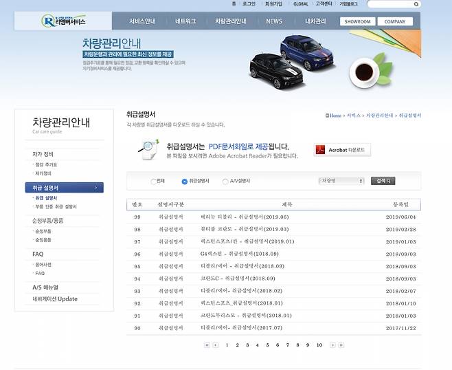 이에 따라 국토교통부는 자동차관리법(제33조 1항 및 4항)과 자동차관리법 시행규칙(제50조)을 개정해 2011년 이후 차량의 경우 자동차를 판매할 때 반드시 한글로 된 취급설명서를 제공하도록 의무화한 바 있습니다. 이와 별도로 최근 대부분의 자동차 제작사에서는 해당 브랜드 홈페이지나 스마트폰 애플리케이션을 통해 차량 취급설명서를 다운로드 받을 수 있도록 서비스를 제공하고 있습니다.