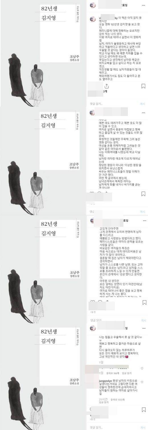 프리랜서 아나운서 겸 모델로 활동 중인 김나영 아나운서가 "같은 여자로서 불편했다"라고 남긴 영화 '82년생 김지영'의 감상평에 젠더 갈등이 폭발하고 있다.