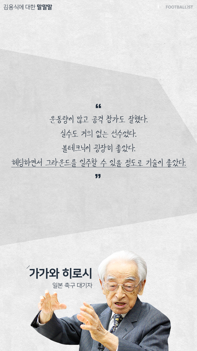 일본에서 '축구의 신'이라 불렸던 김용식 선생은 일본의 첫 국제대회 승리(스웨덴전 3-2 승리)를 이끌었다.
