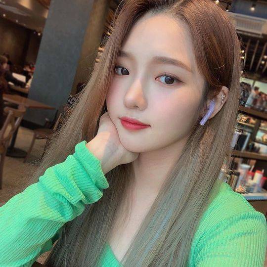 사진 속 노지선은 연두색 골지 티를 입은 채 에어팟을 끼고 있다. 그는 턱을 괴고 오똑한 콧대와 짙은 쌍꺼풀을 자랑했다.