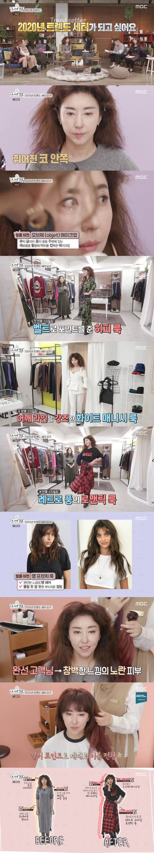 뷰티 어벤져스는 김완선의 의뢰에 맞게 머리부터 발끝까지 변신시켰다. 덕분에 김완선은 트렌디함을 풀 장착하며 보는 이들을 감탄케 했다.(사진=MBC '언니네 쌀롱' 캡처)