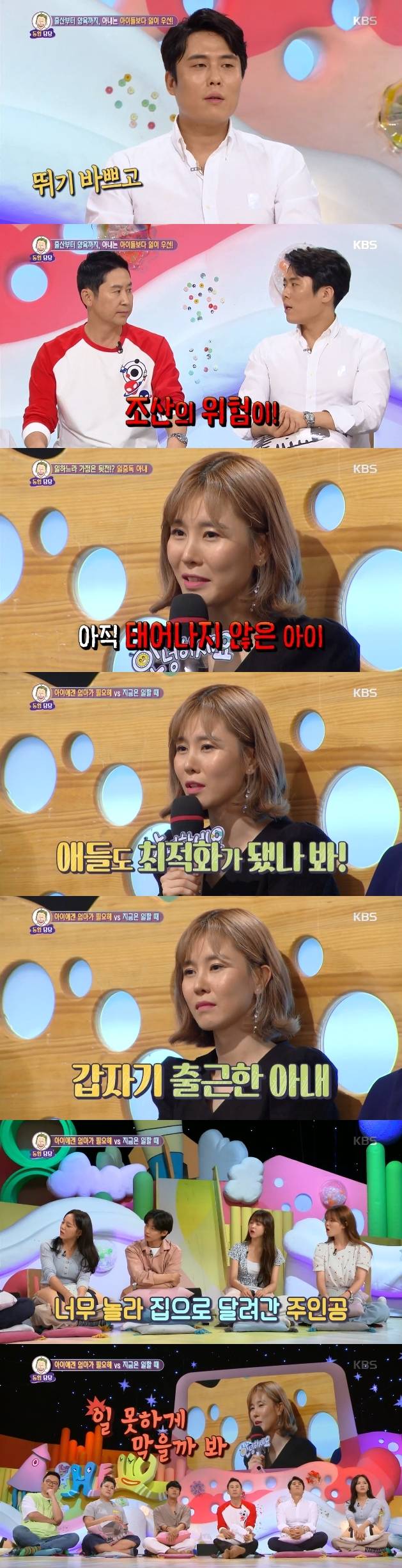 이날 남편은 "아내가 워커홀릭이다"고 폭로했다. 또 "만삭 때도 뛰어다니는 건 물론 무거운 짐도 나르고 했다. 둘째 때는 조산 위험도 있었는데 수술조차 받지 않았다"고 전했다.