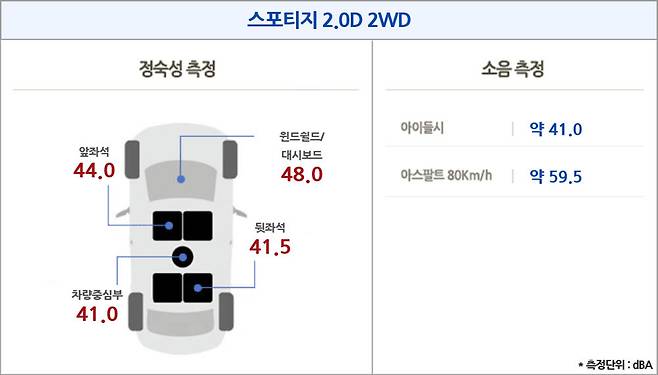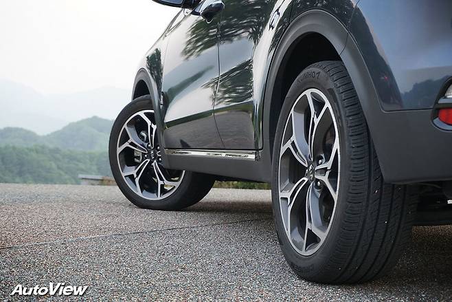 스포티지 2.0 디젤에 쓰인 타이어는 금호의 크루젠 프리미엄이다. SUV용으로 나온 프리미엄급 타이어인데, 무난한 성능과 소음을 보이는 제품 중 하나다. 금호는 N.V.H(소음, 진동) 부분을 잘 잡아내는 편인데, 그래서인지 이 타이어에 대한 만족도 역시 높았다. 245mm 급 너비 타이어 4개를 장착한 스포티지가 시속 80km로 주행하며 59.5dBA 수준의 정숙성을 보여준 것만 봐도 그렇다.
