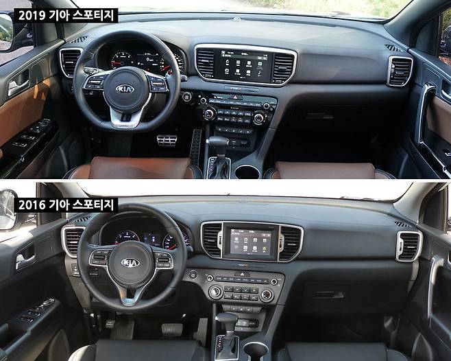 실내도 큰 변화는 없다. 경쟁 차인 현대 투싼은 외부 디자인의 변화 대신 실내 변화에 초점을 맞췄는데 스포티지는 변화의 의지가 없어 보인다.